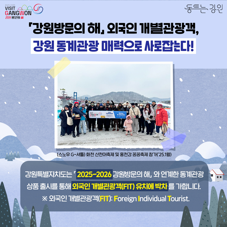강원특별자치도는「2025-2026 강원방문의 해」와 연계해 동계 관광상품을 출시했습니다. 이번 동계 관광상품을 통해 외국인 개별관광객(FIT) 유치에 박차를 가할 예정입니다.
