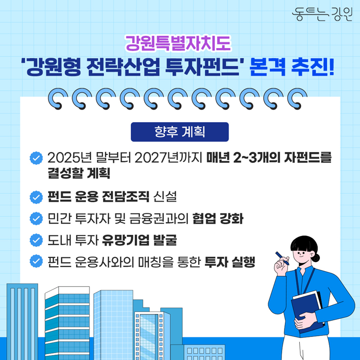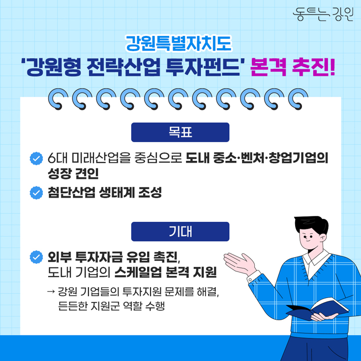 강원형 전략산업 투자펀드는 강원 기업들이 겪는 가장 큰 어려움인 투자지원 문제를 조금이나마 덜어드릴 수 있는 좋은 출발점이 될 것으로 기대합니다.