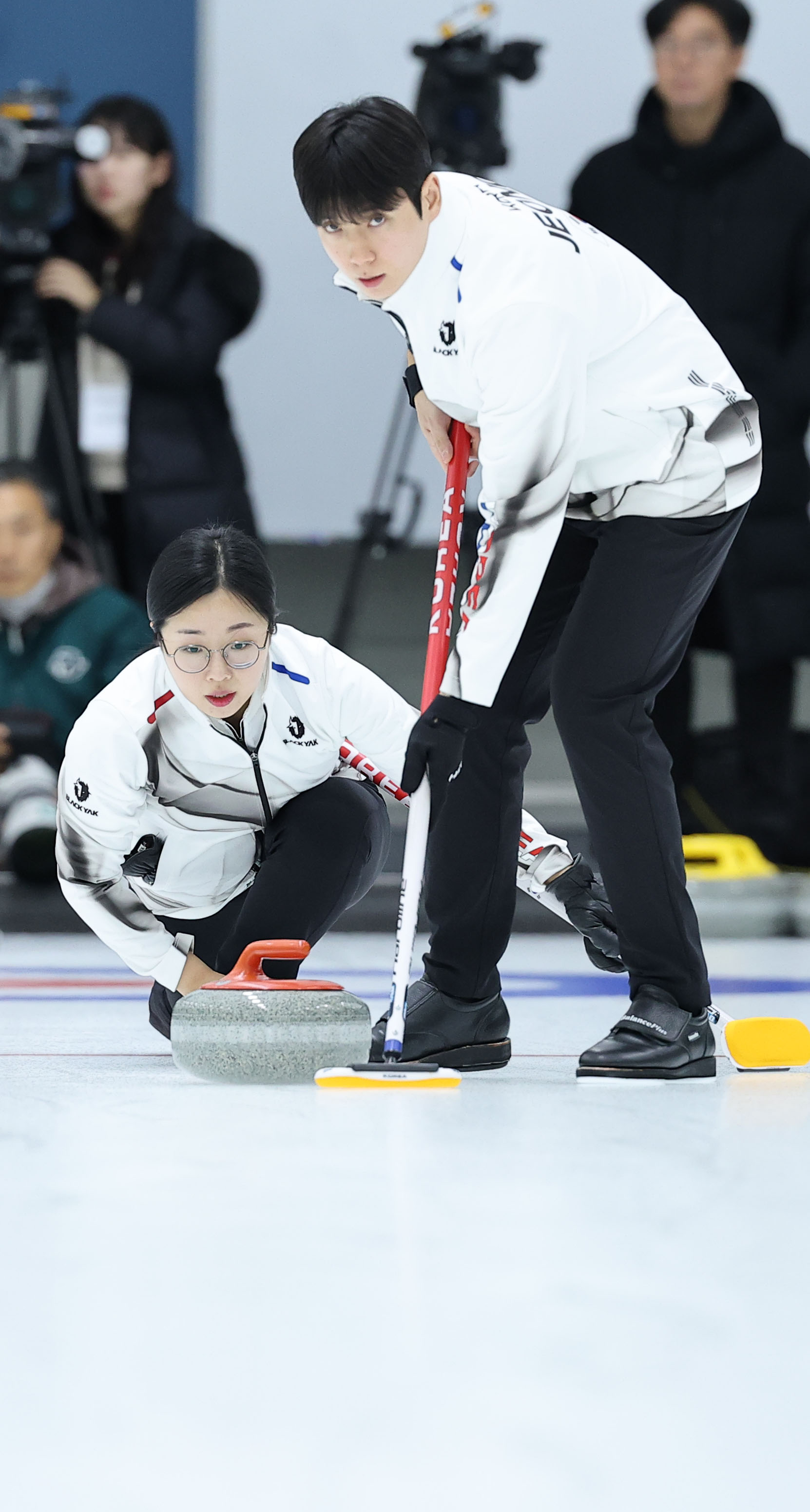 한국 컬링 사상 최초로 3회 연속 올림픽 무대에 서는 김선영 선수(강원시청)와 첫 올림픽 출전의 정영석 선수(강원도청)는 한팀이 되어 믹스 더블 경기에서 한국 컬링 역사를 새로 쓰겠다는 각오를 보여주고 있습니다.