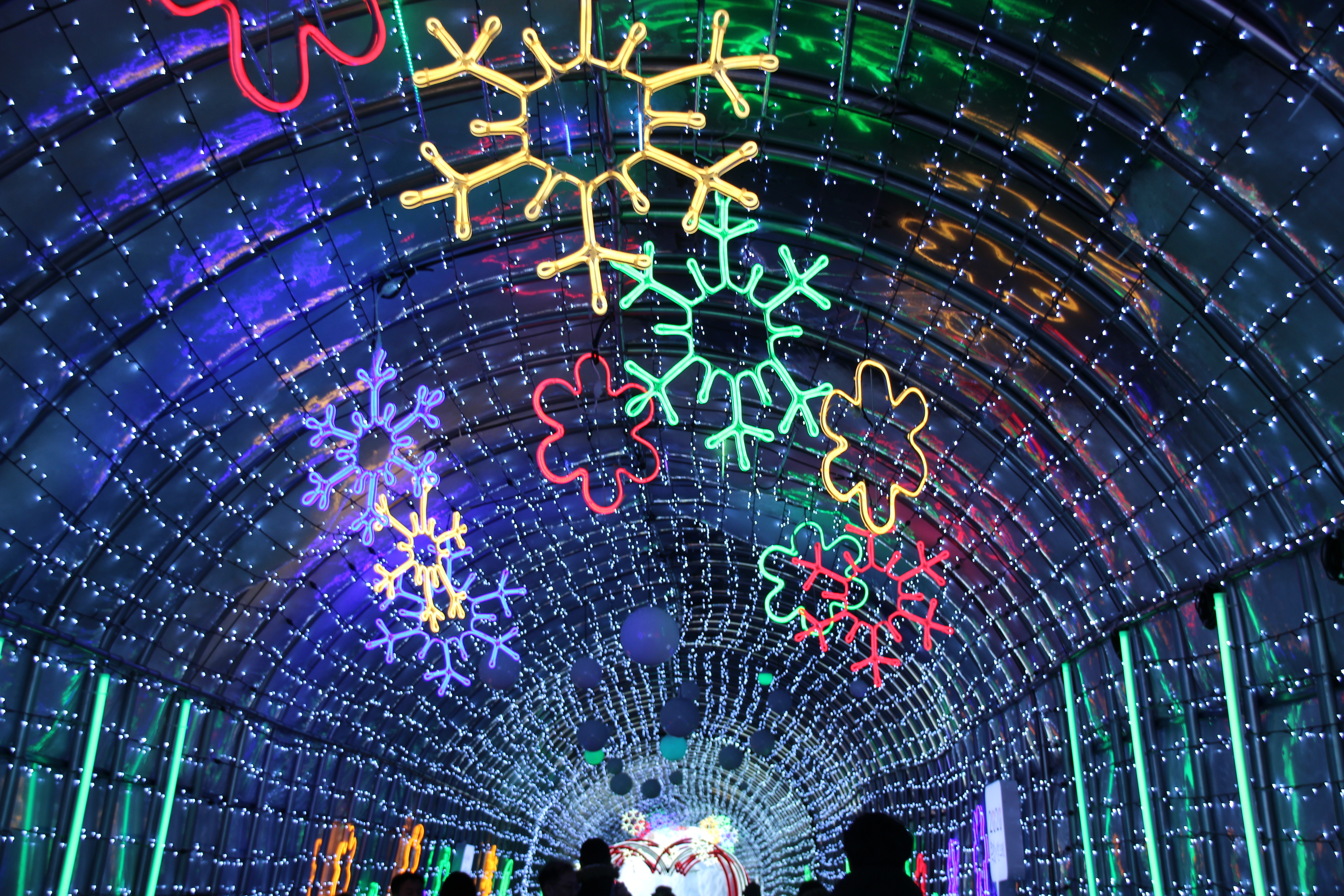 축제장을 가득 메운 수많은 눈꽃 모양의 야간 조명이 해 질 녘 일제히 빛을 발합니다.
