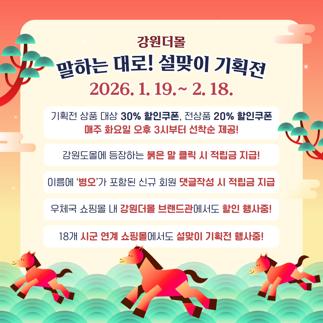 도내 18개 시군 연계 쇼핑몰에서도 설맞이 기획전을 동시에 추진합니다.
